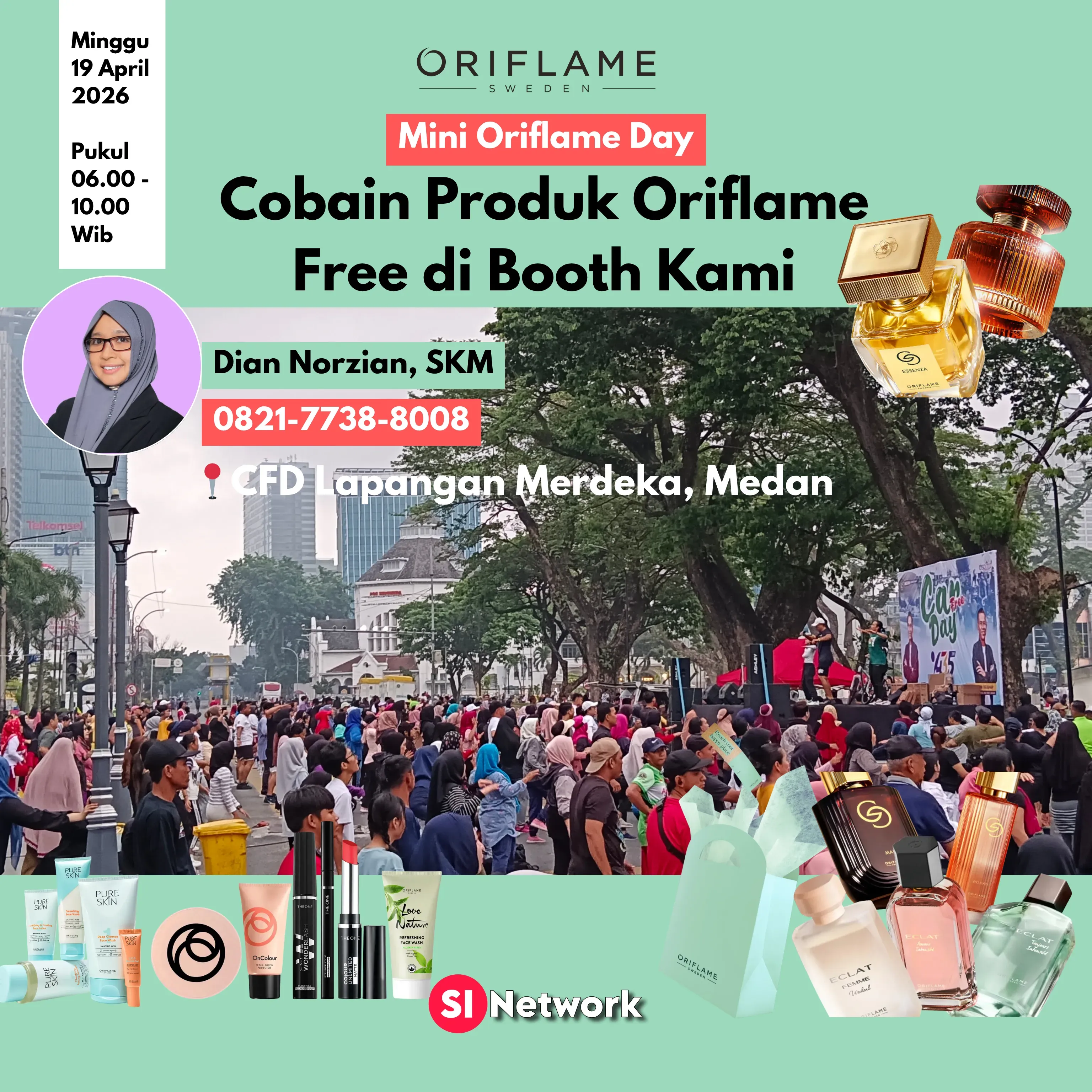 Hej Beauty Lovers kota Medan Oriflame Indonesia, hadir lebih dekat dengan kamu, tepat nya di CAR FREE DAY Lapangan Merdeka (Merdeka Walk) kota Medan, Booth Stand kami, ada di samping Bank Mandiri, Grand City Halll ( simpang 3 Lampu Merah) Saat nya untuk update kosmetik kamu, self care time dengan promo produk Oriflame yang sangat istimewa di bulan April 2026, ada banyak diskon hingga 60%, d...Lebih Lanjut